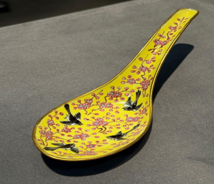 清同治黄地粉彩梅鹊纹羹匙。大兴区委宣传部供图